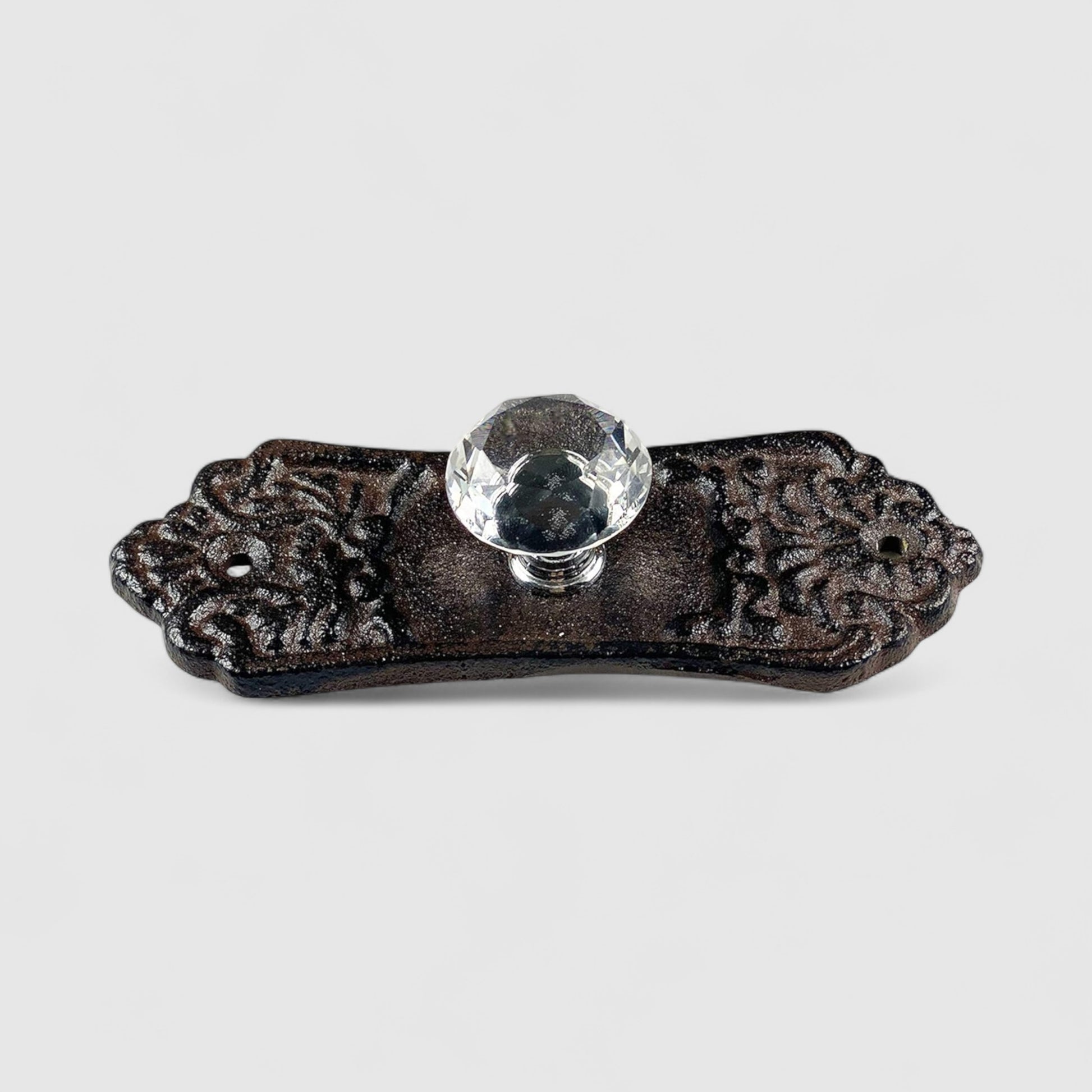 Elevate your cabinetry with our Elegant Cast Iron Crystal Drawer Pull, Faceted Vintage Cabinet Knob. Handcrafted from premium cast iron and accentuated with exquisitely faceted crystal details, this drawer pull is a refined blend of durability and vintage charm. Its ornate design and antique finish add a touch of sophisticated elegance, making it the perfect accent for kitchens, bathrooms, and living spaces.