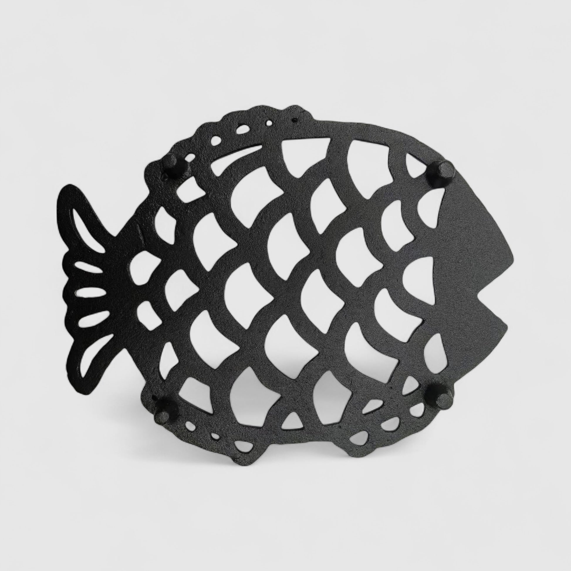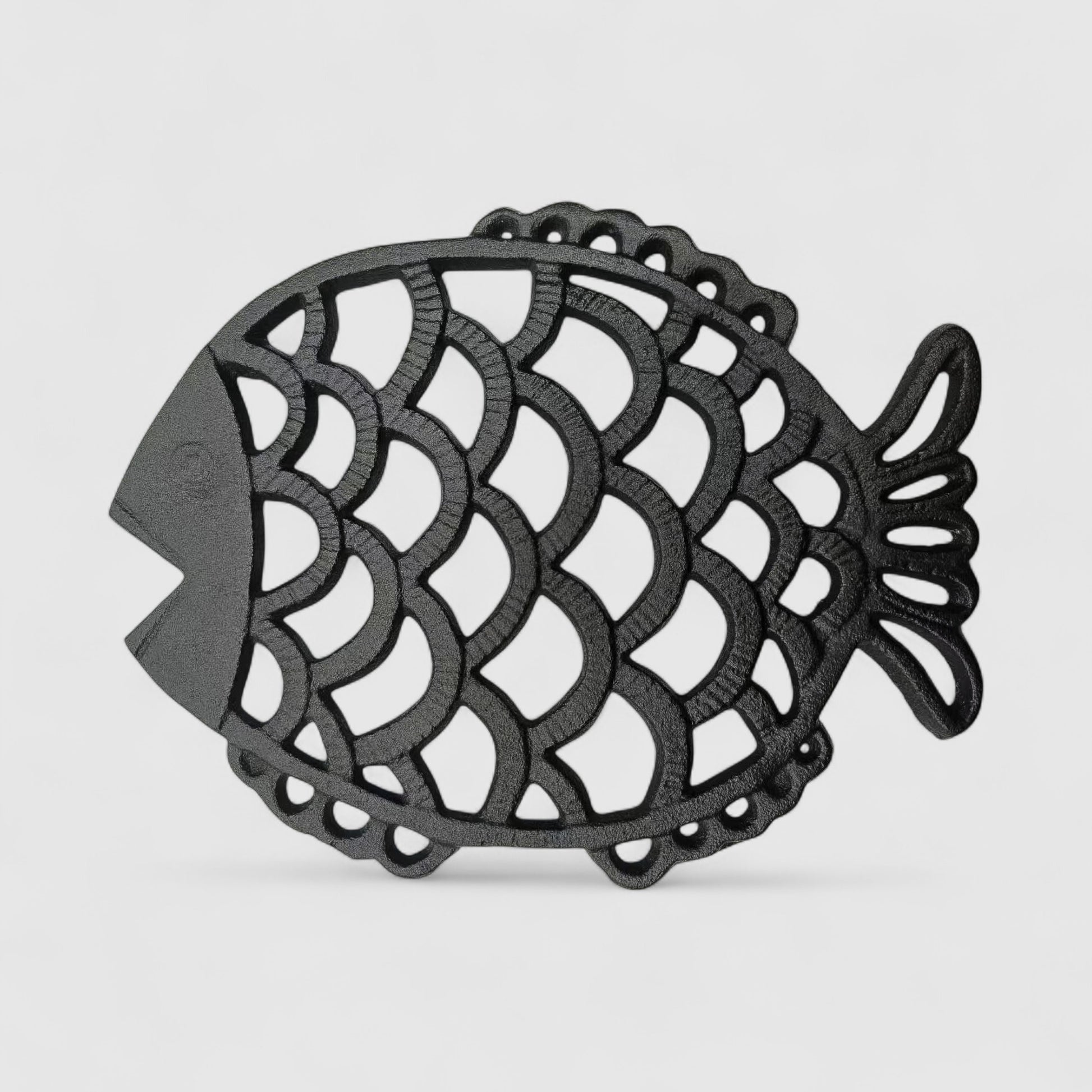 Transform your kitchen with our Cast Iron Fish Trivet, Coastal Kitchen Pot Holder. Crafted from durable cast iron with a striking black finish, this trivet brings a coastal vibe to your space while serving as a reliable pot holder. Its unique fish shape, featuring an intricate scale pattern, protects your countertops and tables from hot pots and pans, blending functionality with seaside style.