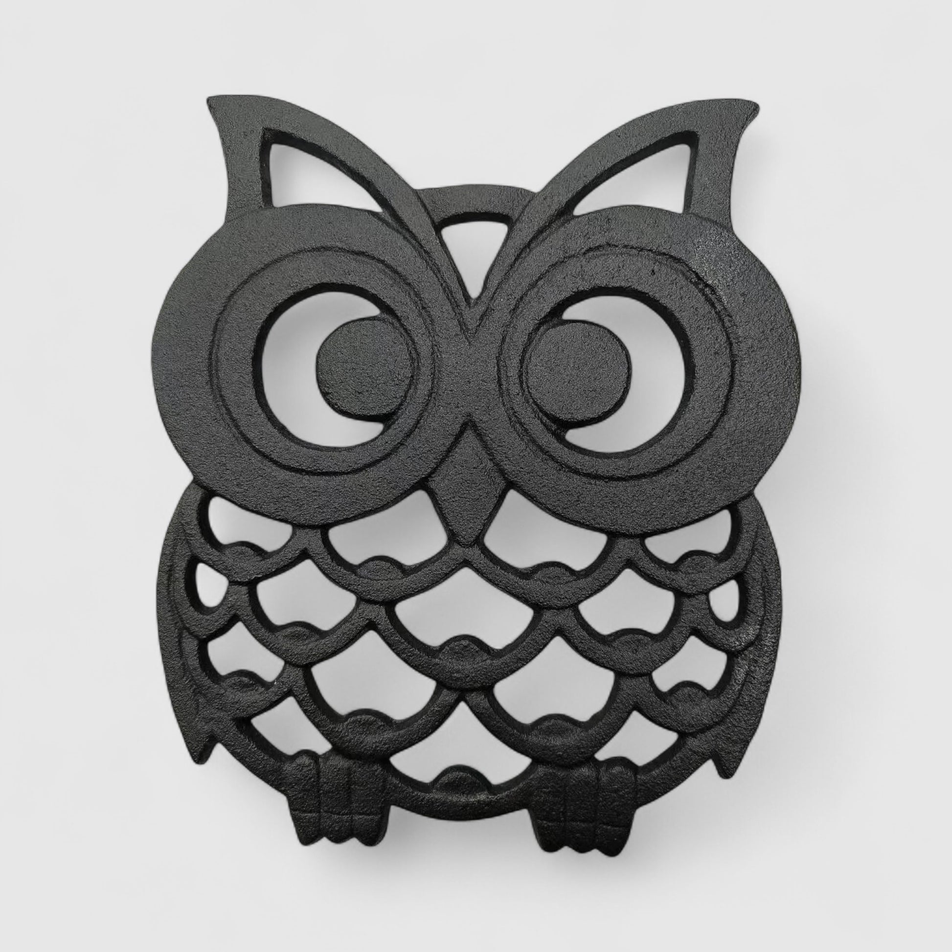 Brighten your kitchen with our Cast Iron Owl Trivet, Farmhouse Kitchen Pot Holder. Crafted from sturdy cast iron with a rich black finish, this trivet blends rustic farmhouse charm with essential functionality. Its detailed owl design, featuring textured feather patterns, protects your countertops and tables from hot pots and pans while adding a cozy, countryside feel to your space.