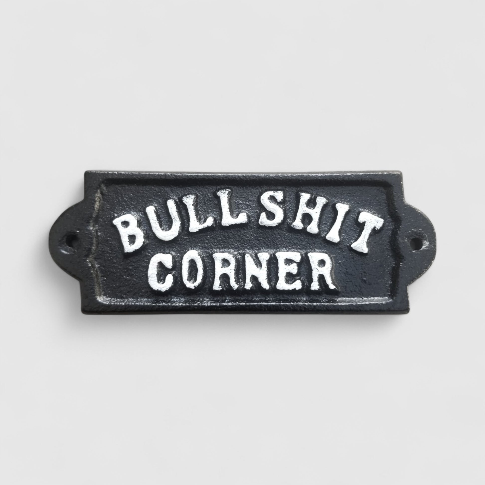 Humorous Cast Iron Plaque: Bullshit Corner - Playful Wall Sign