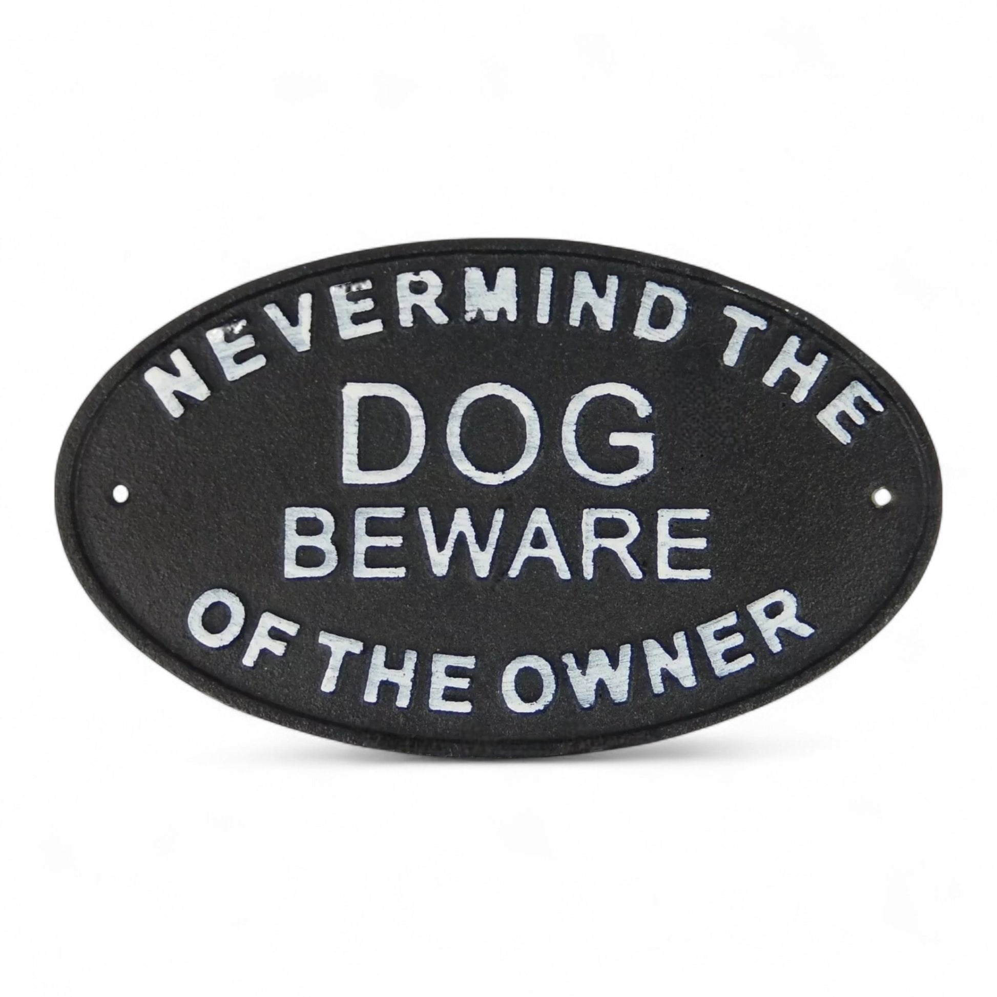 Tongue-in-Cheek Cast Iron Plaque: Nevermind Dog, Beware Of The Owner