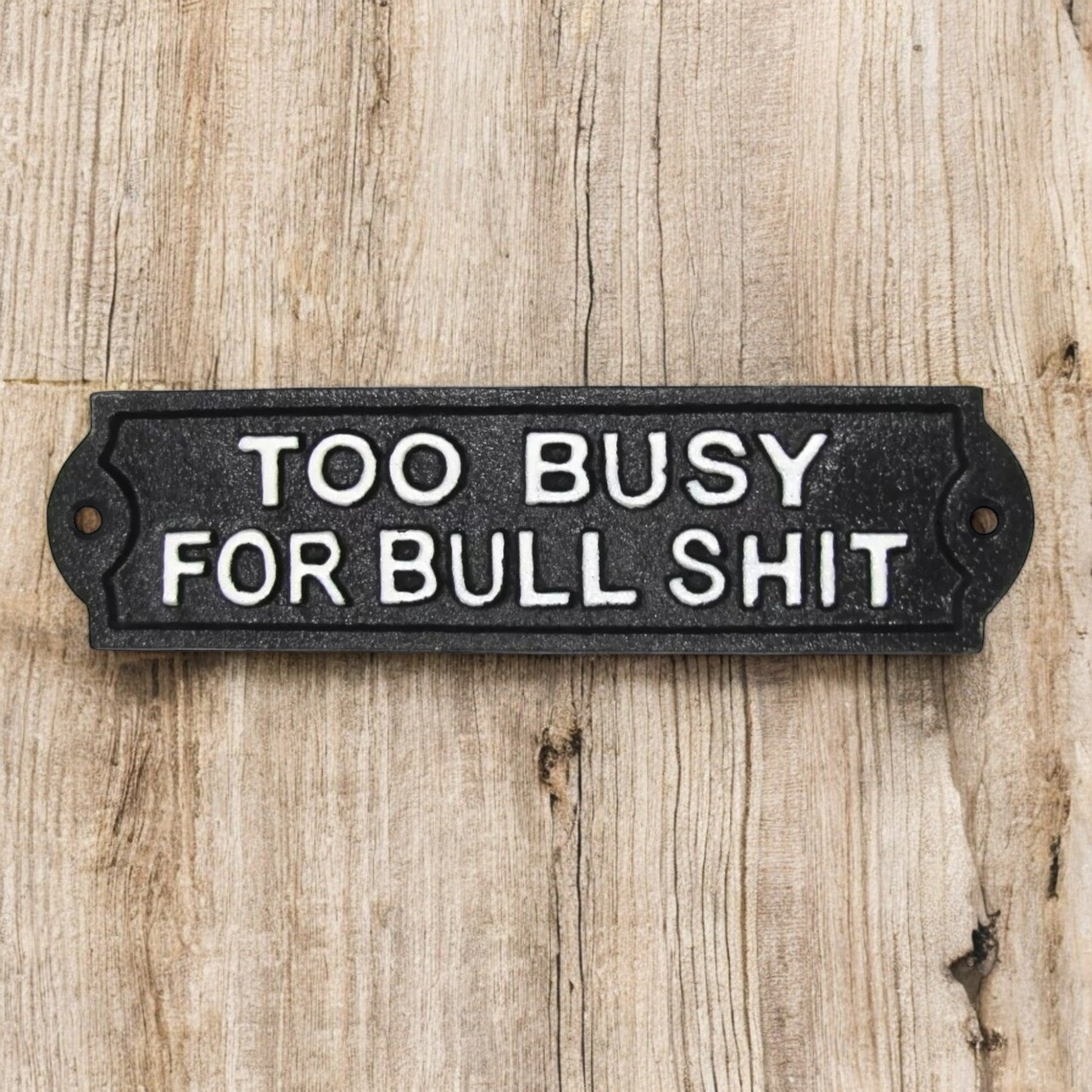 Cast Iron Plaque: Too Busy For Bullshit - Bold Decorative Sign