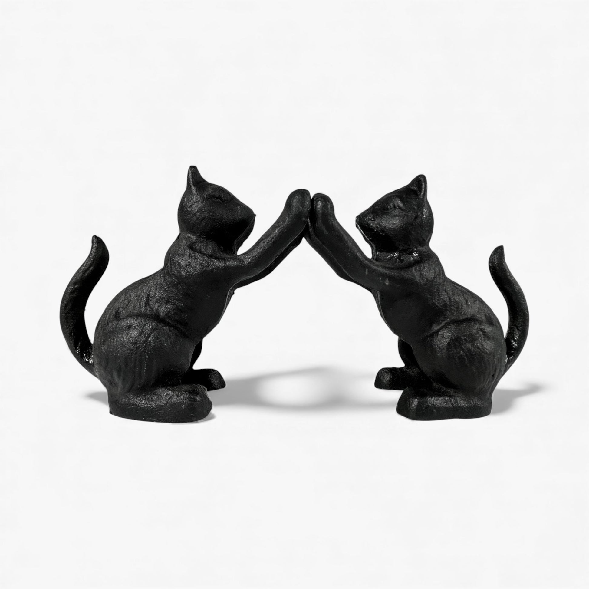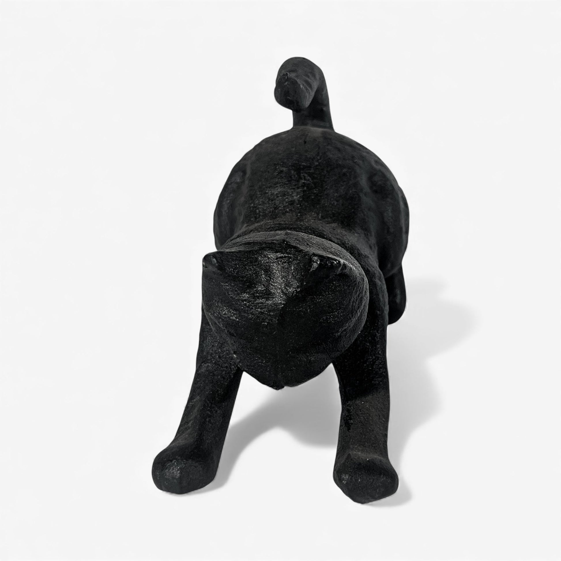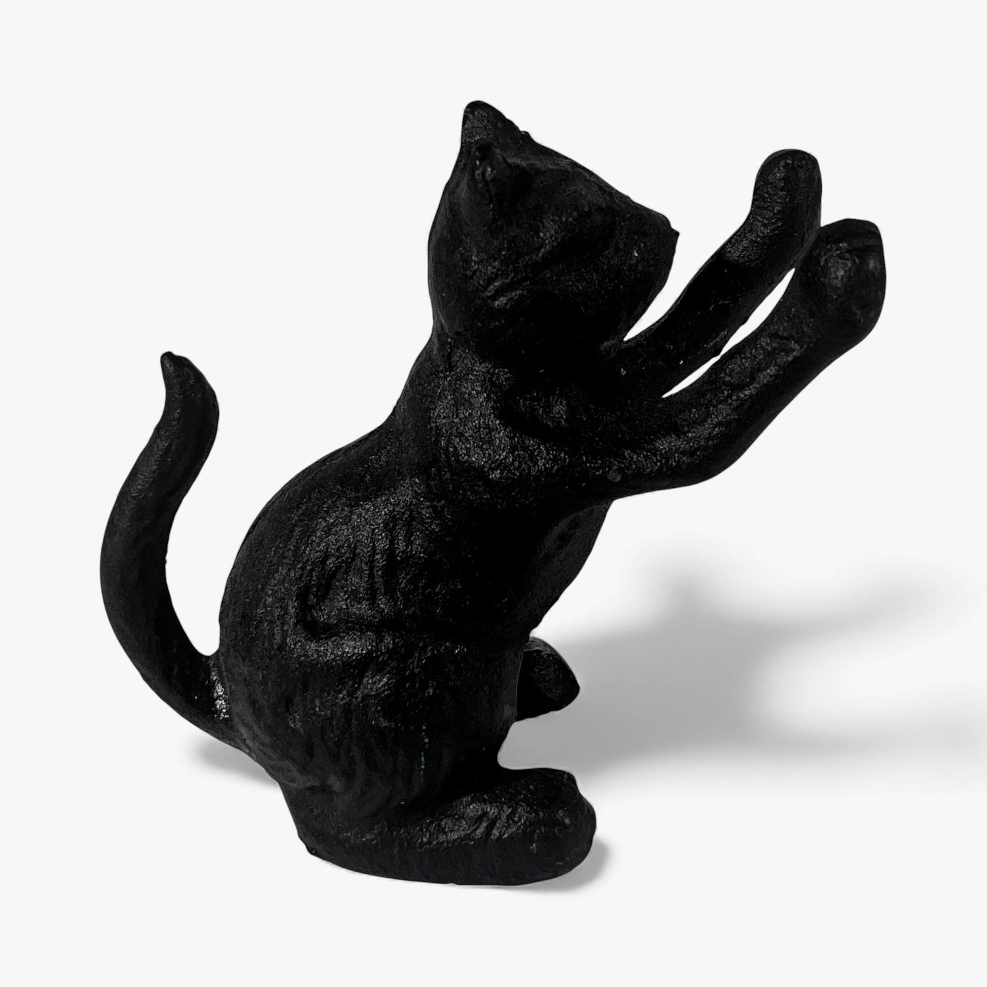 This Cat Door Stop Cast Iron Black Decorative Bookend captures the playful pose of a sitting cat reaching upward, giving it a lively, expressive look that works well across many decor styles. The matte black finish highlights the sculpted fur texture and simplifies the silhouette, making it charming without feeling overly cute.