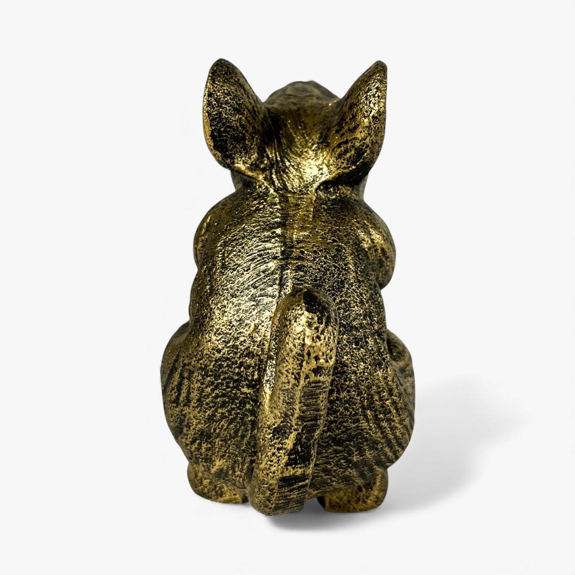 This Mouse Door Stop Cast Iron Gold Decorative Bookend brings a playful yet classic touch to your home. The sculpted mouse sits upright with detailed fur texture, oversized ears, and a charming expression that makes it an eye catching accent without feeling overly whimsical. The antiqued gold finish adds warmth and highlights the cast iron texture, giving the piece a vintage inspired look that fits easily with farmhouse, cottage, eclectic, or traditional decor.