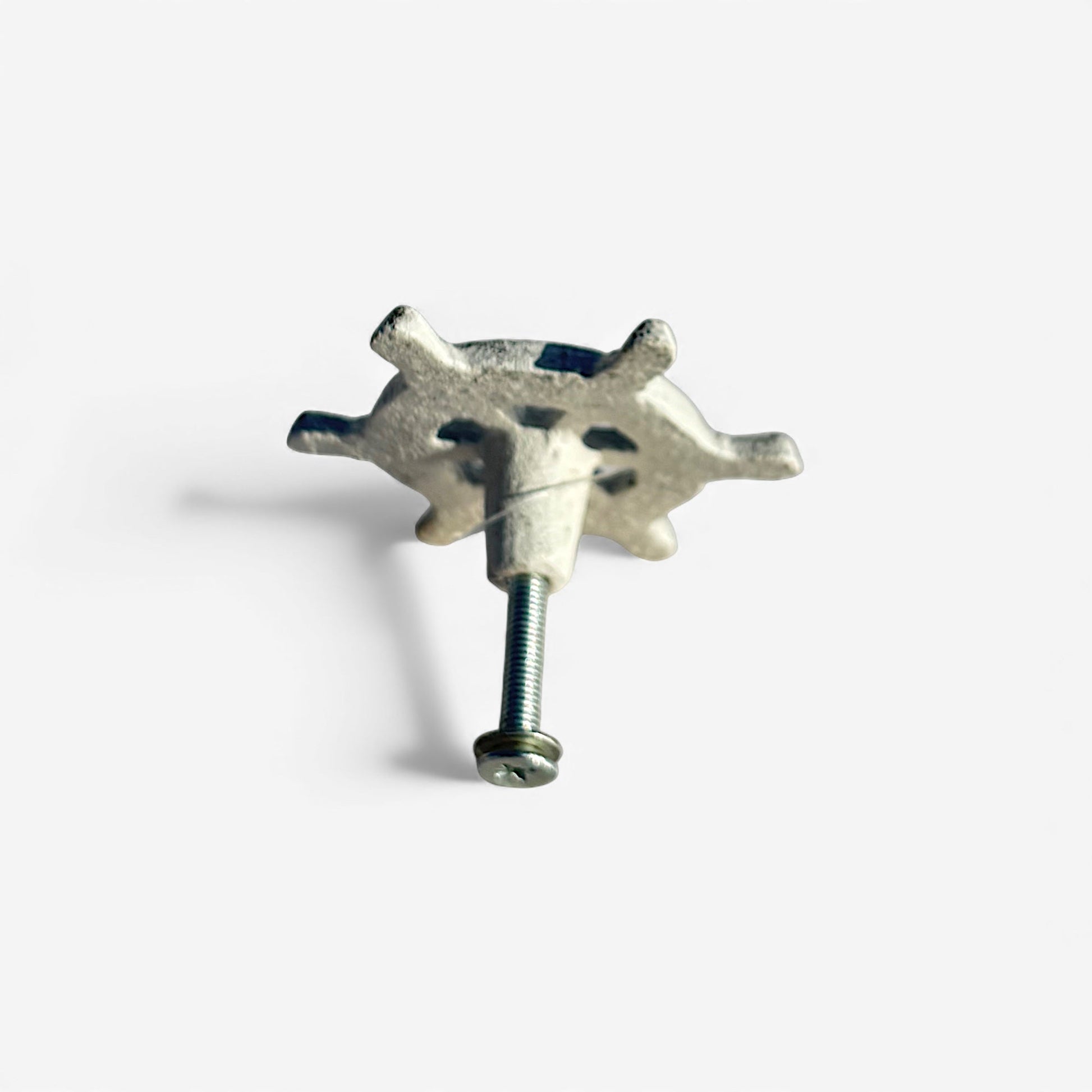 Ship Wheel Cabinet Knob, Distressed White Nautical Pull